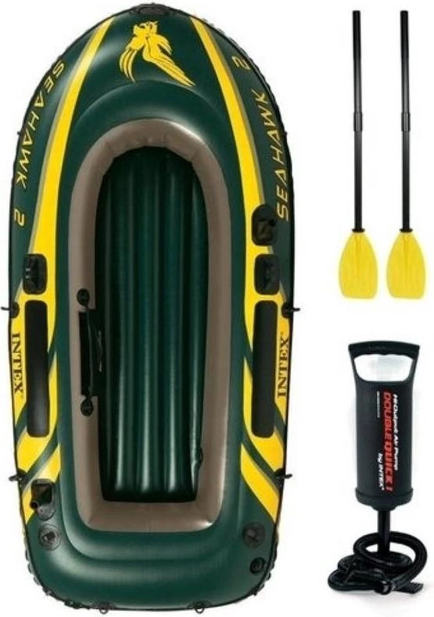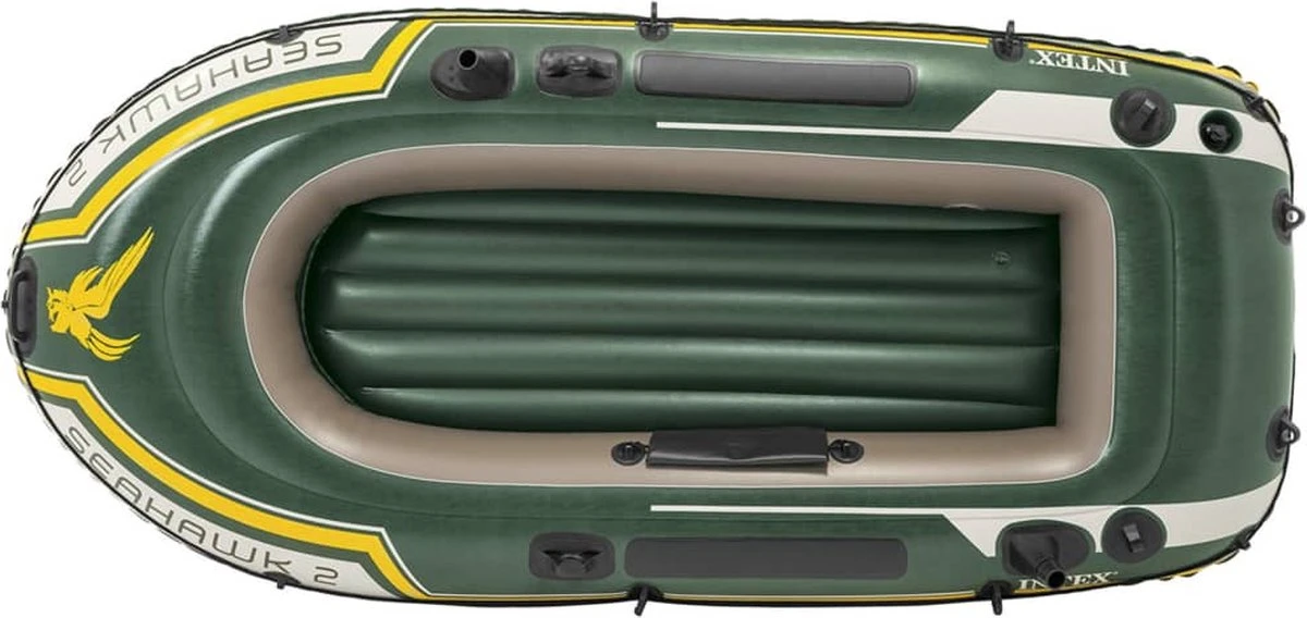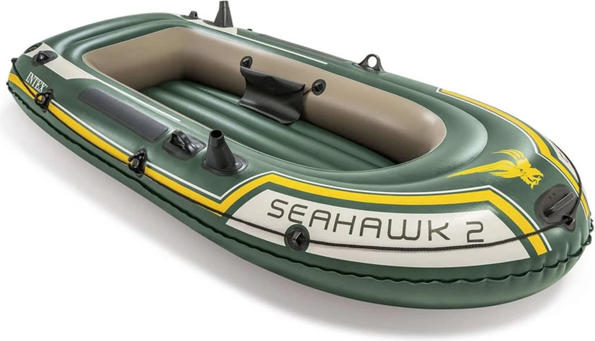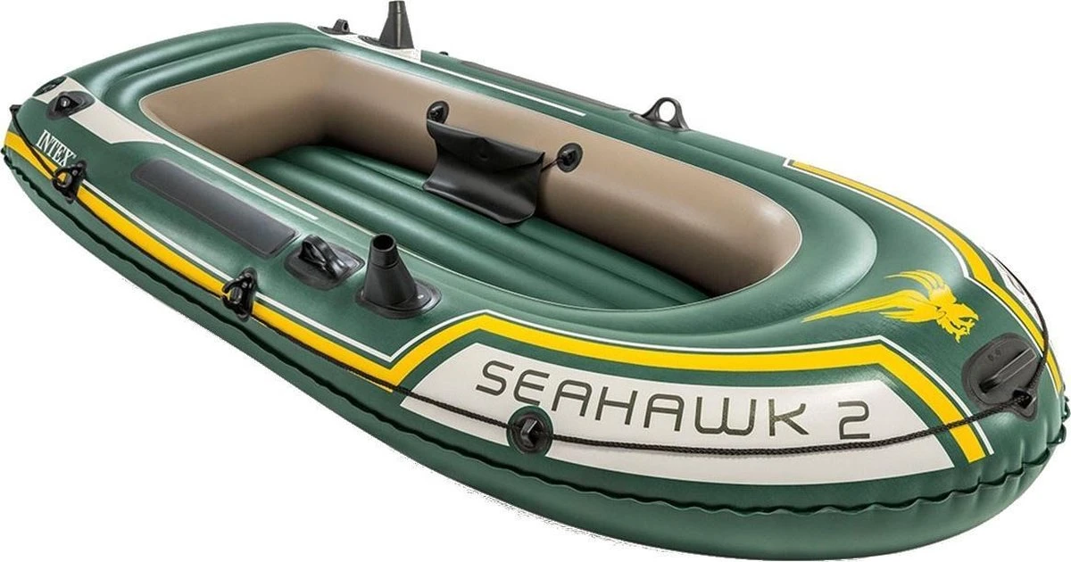 De Intex Seahawk boten zijn gebouwd van extra dik vinyl (0,5 mm dik) en is prima bestand tegen olie, zout water of felle zon. Daarnaast beschikt de boot over 3 afzonderlijke luchtkamers. Als één van deze luchtkamers lek raakt kan de boot nog veilig de wal bereiken. De Intex Seahawk 2 wordt geleverd inclusief pomp en peddels.