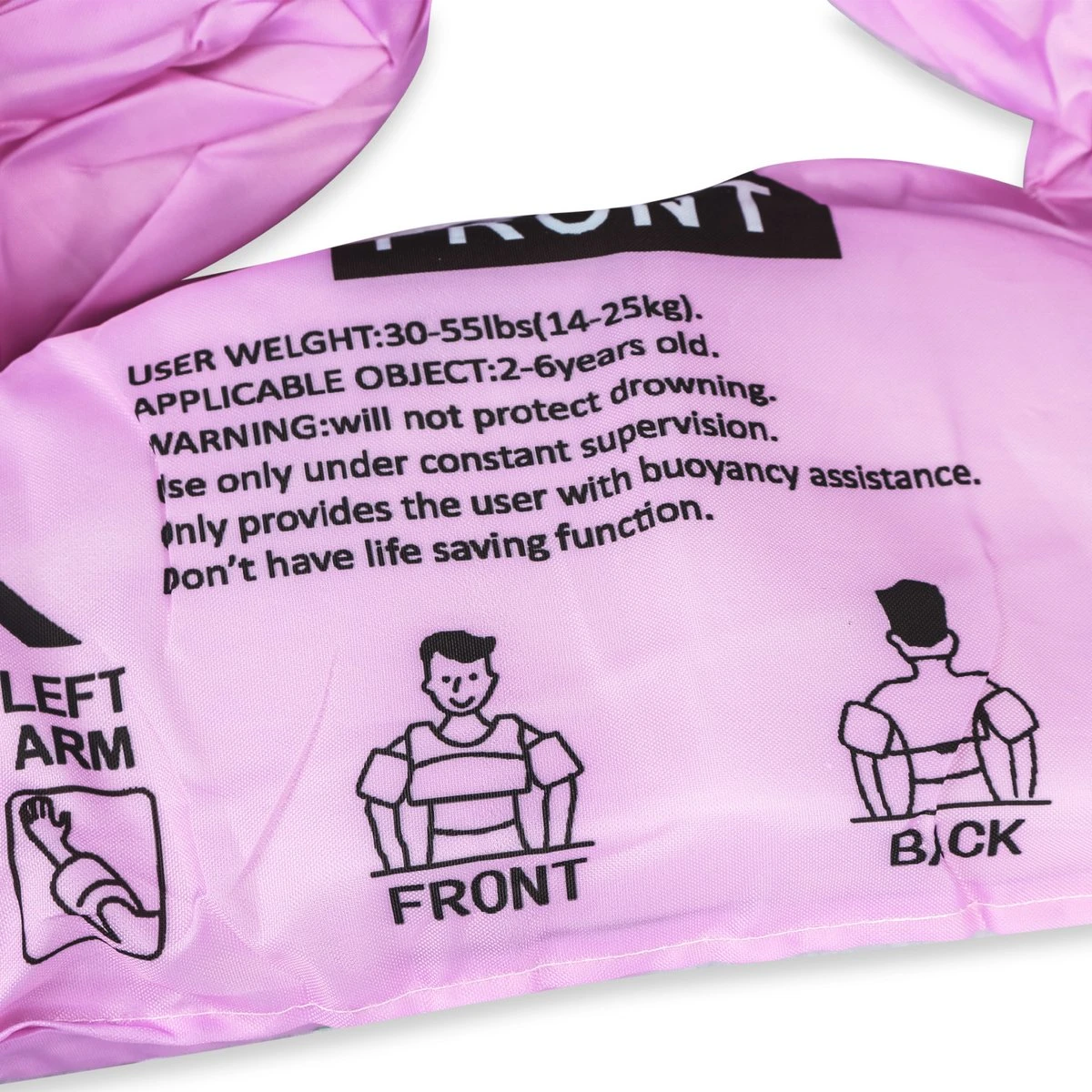 Met het CE gecertificeerde LBB-zwemvest kan het kind veilig in het water waarbij het geheel goed blijft zitten tijdens het zwemmen. De puddle jumper bestaat uit één stuk die bevestigd wordt aan beide armen en de borst met een gesp op de rug zodat het kind het zwemvest zelf niet kan losmaken.