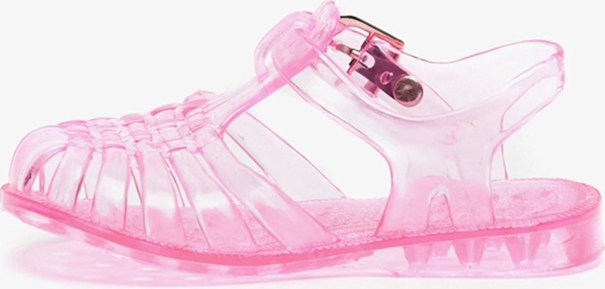 Transparante waterschoen voor meisjes met gespsluiting en nopjes aan de onderkant tegen het uitglijden..