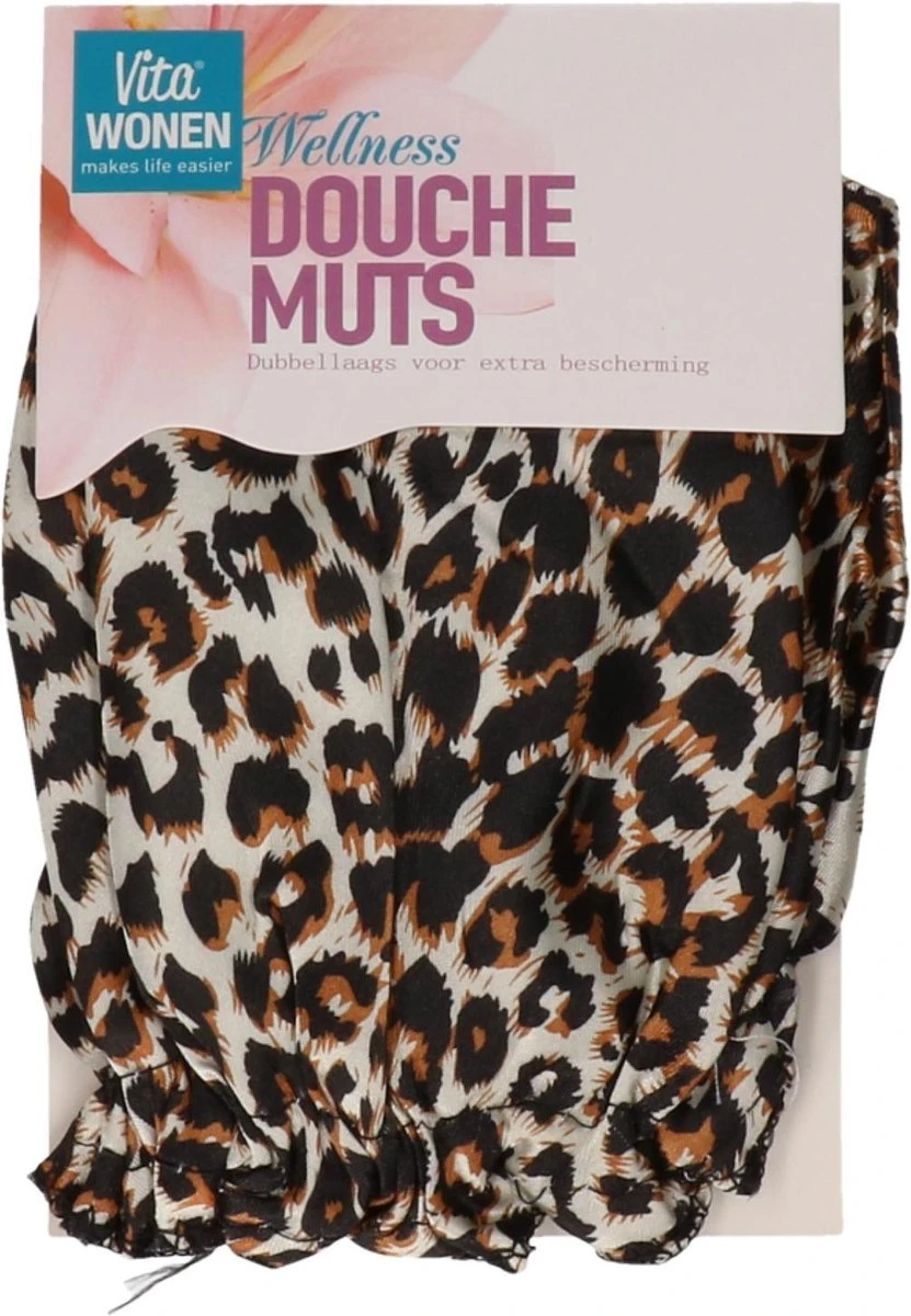 Houd je haar droog met deze panterprint douchemuts.