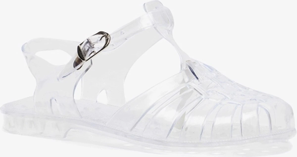 Transparante waterschoen voor dames en kinderen. De waterschoenen hebben een verstelbare gespsluiting.