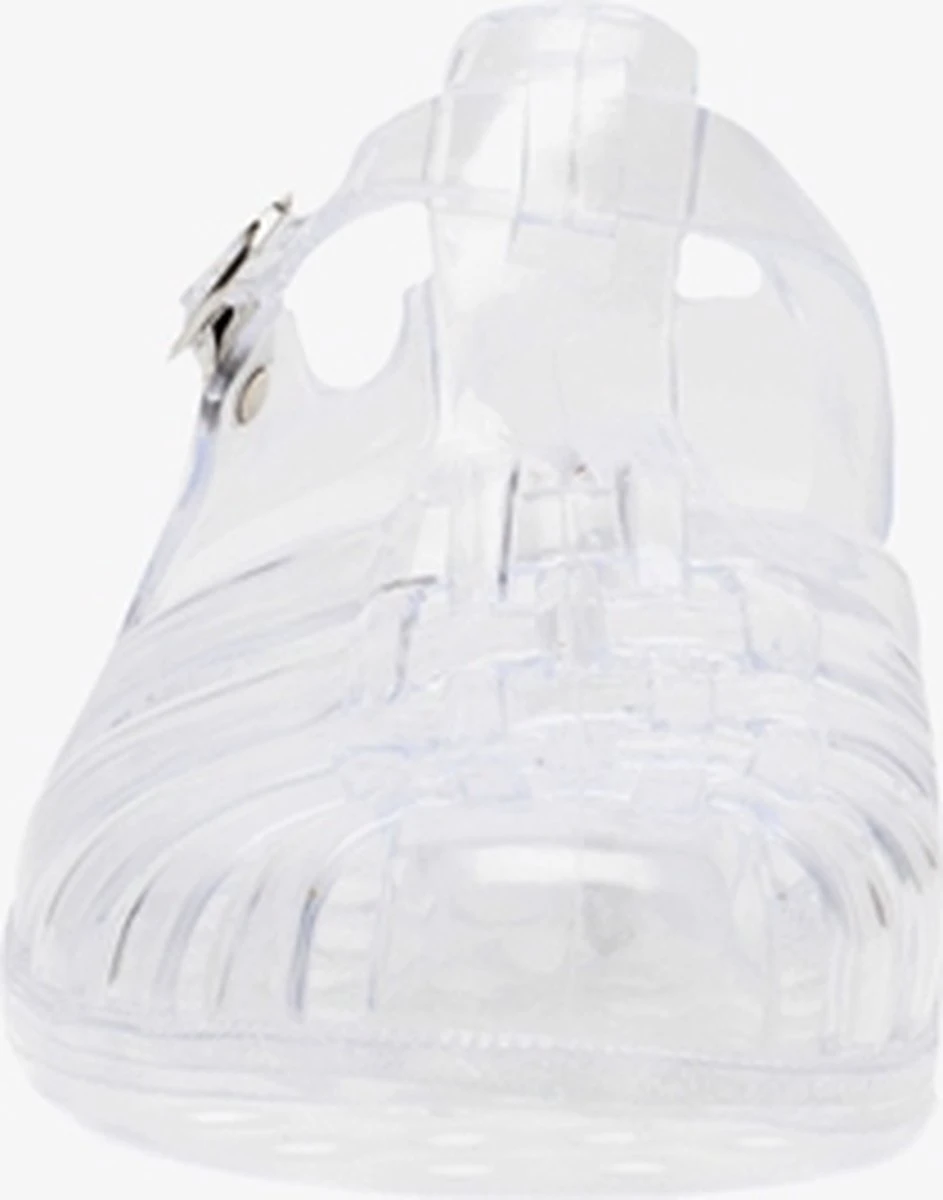 Transparante waterschoen voor dames en kinderen. De waterschoenen hebben een verstelbare gespsluiting.