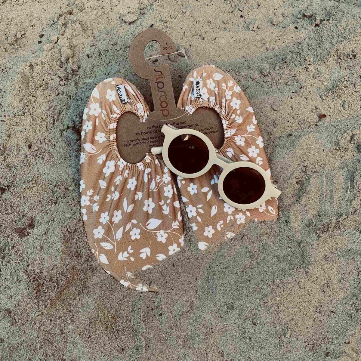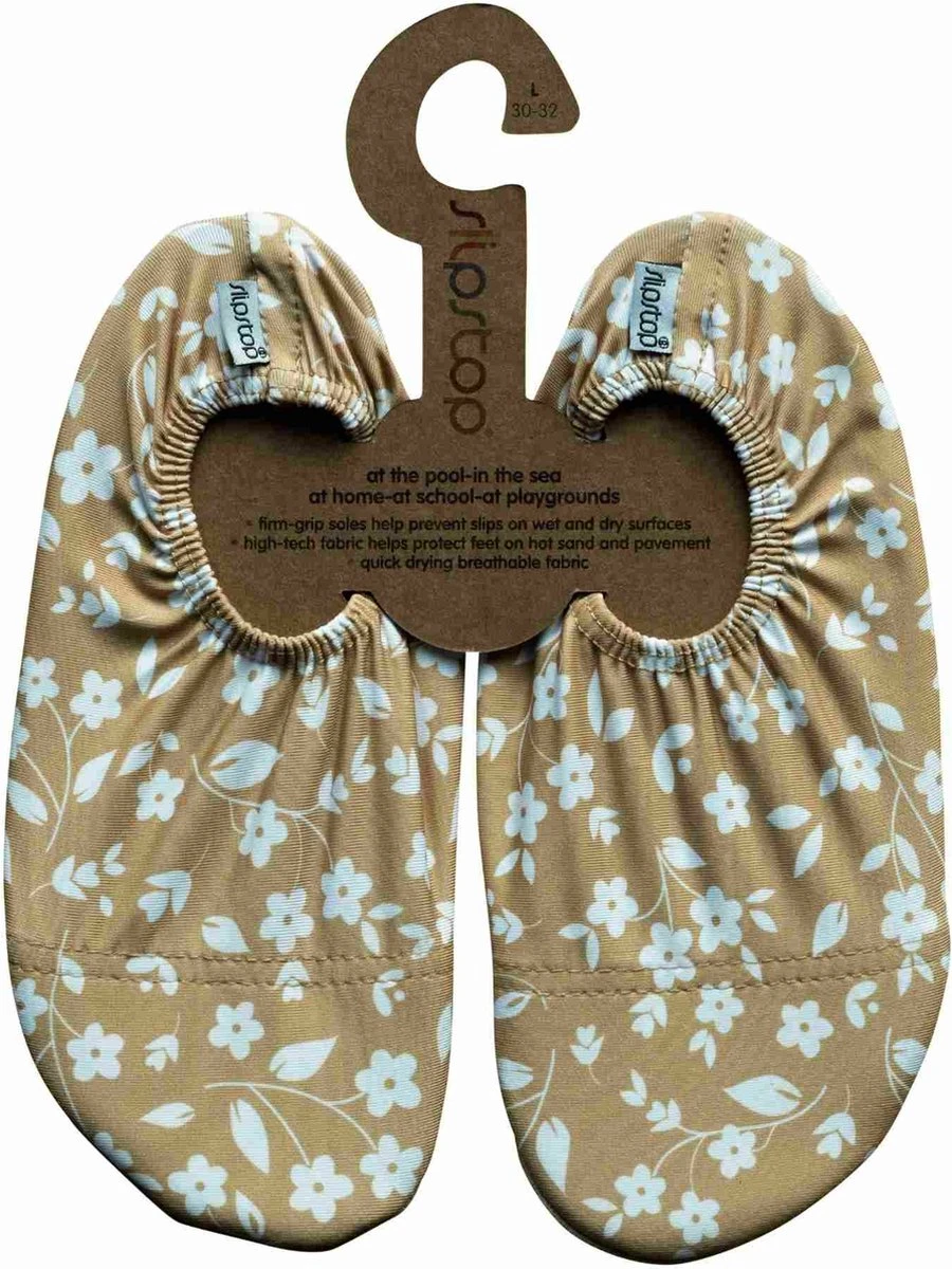 Slipstop Mosterd Flower – Oker met witte bloemen, schattige voor meisjes Oker kleurige zwemschoentjes met een wit schattig bloemen printje! Deze hippe kleur slipstopsshoes kunnen goed onder de zwem outfitjes van dit seizoen.